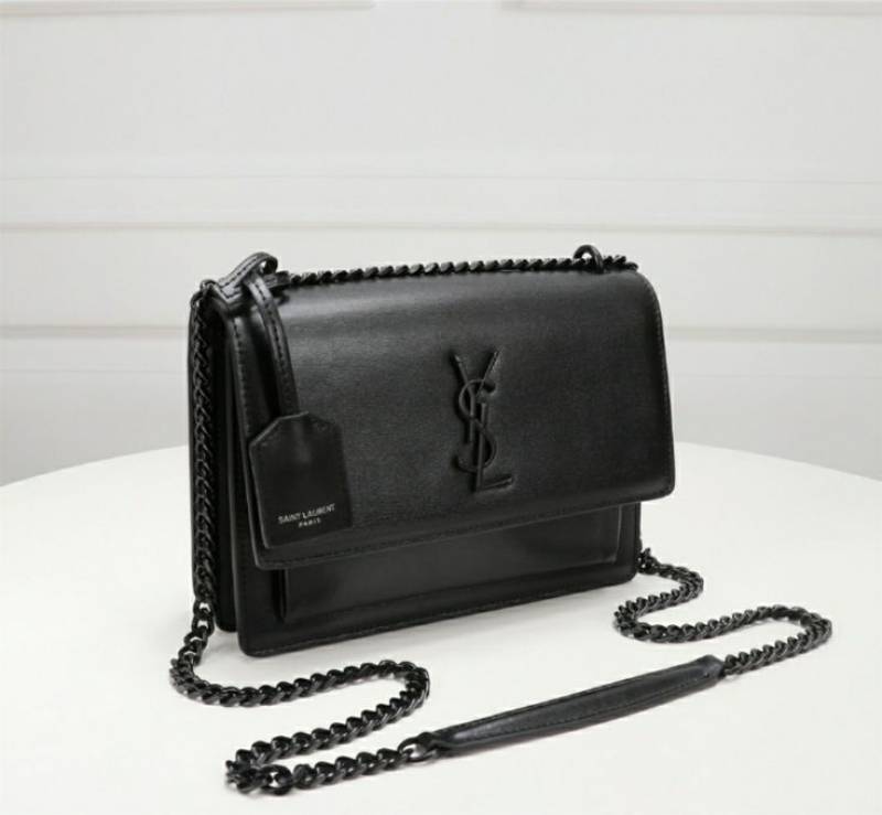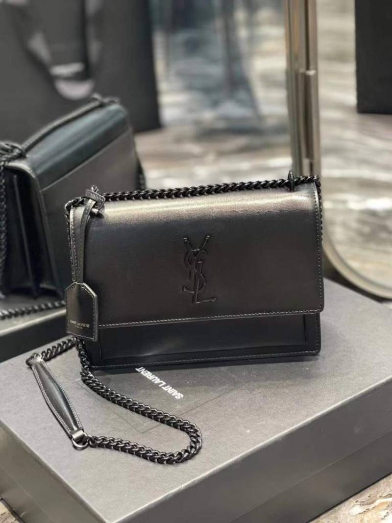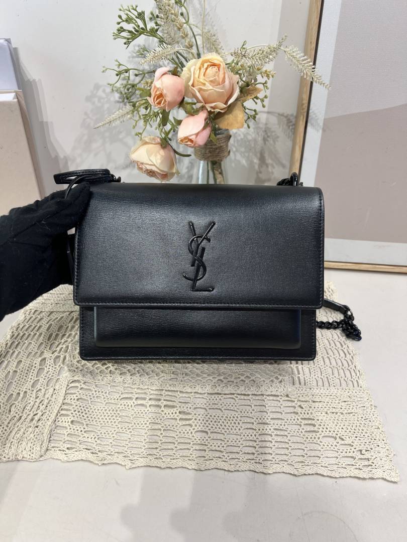• Ysl Saint Laurent Sunset Medium Leather Shoulder Bag Black With OG Box & Carry Bag Black Y2503